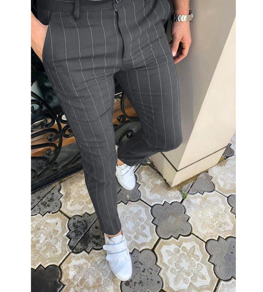 New 2022 Men's Hot Trousers Business Stripe Slim Spring And Autumn Waist Small Foot Pencil Pants Street Fashion Men's Wear